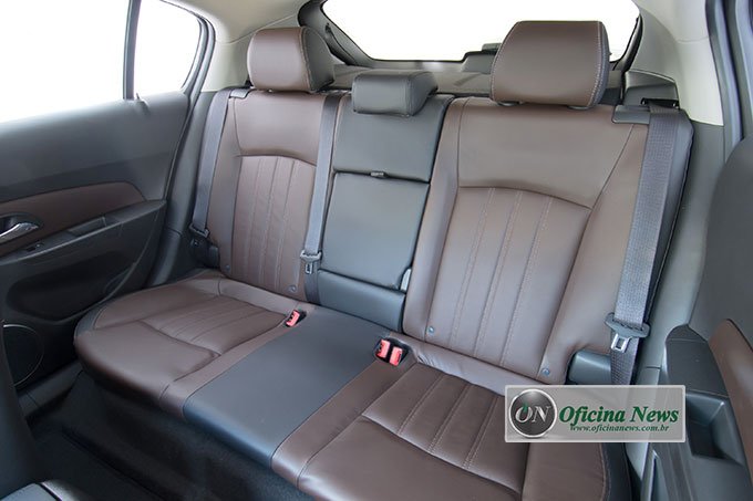 Internamente, o Chevrolet Cruze manteve o padrão de requinte e sofisticação tradicionais do modelo. A versão LTZ ganhou acabamento interno premium, com bancos, portas e painel revestidos em couro bicolor (Brownstone e Jet Black) com costura pespontada, coisa fina!