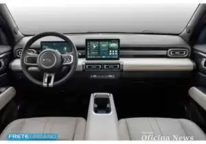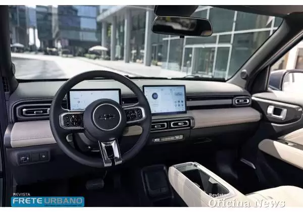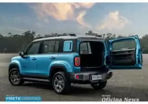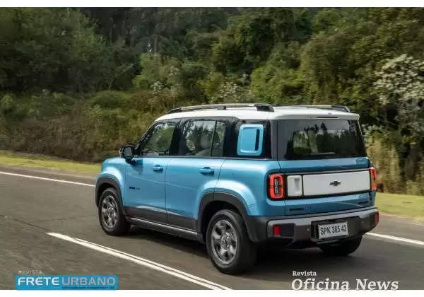 O modelo mede 4,003 metros de comprimento, 1,760 m de largura, 1,726 m de altura e tem entre-eixos de 2,560 m. O design segue a linha “boxy” de SUVs, com carroceria elevada e melhor aproveitamento do espaço interno. São dois porta-malas: 355 litros no compartimento traseiro (916 litros com os bancos rebatidos) e mais 35 litros sob o capô dianteiro. A tampa traseira tem abertura lateral para facilitar o acesso em locais restritos.