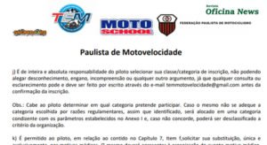 No site da FPM(Federação Paulista de Motociclismo, por exemplo, consta na página 6/24 referente ao Campeonato Paulista de Motovelocidade, que “É de inteira e absoluta responsabilidade do piloto selecionar sua classe categoria de inscrição.”