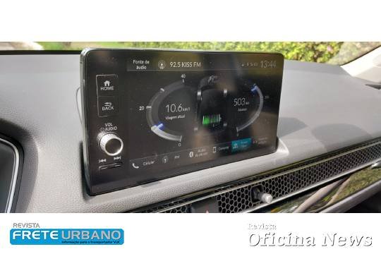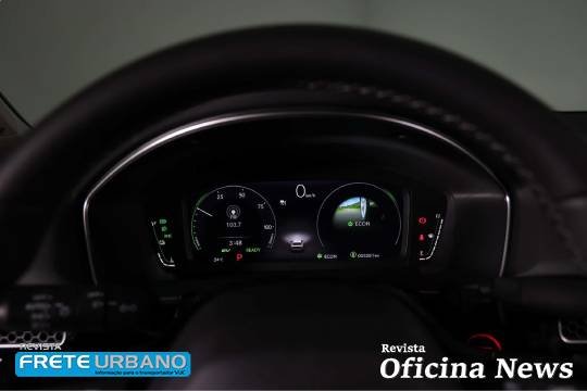 Aí temos três modos de condução: EV Drive, 100% elétrico; Hybrid Drive, elétrico e combustão; e Engine Drive, somente combustão – que se alternam automaticamente em função de fatores como topografia, demanda de acelerador, nível de energia nas baterias etc. Na grande maioria das situações, o Civic Híbrido é tracionado pelo motor elétrico (EV Drive).