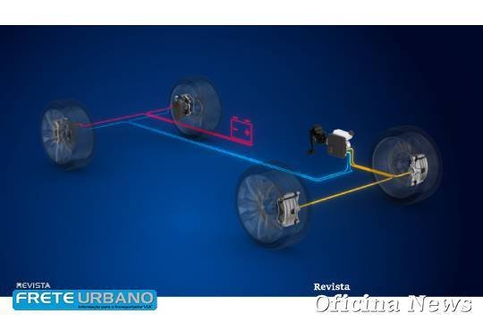 O EMB da ZF está no centro do sistema de frenagem ‘seca’, onde o fluido para freio não é mais necessário. A pressão do freio não é gerada pela pressão dos fluidos no sistema hidráulico, mas sim por motores elétricos. Os sinais de freio do pedal para o motor elétrico também são transmitidos de forma puramente elétrica, razão pela qual o termo ‘freio seco by-wire’ é utilizado.